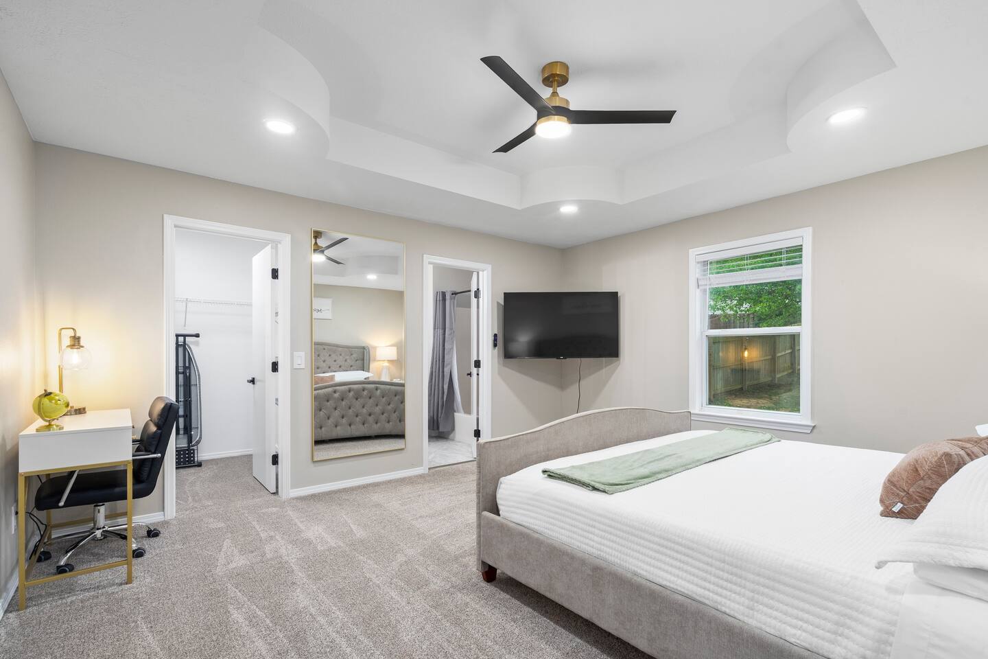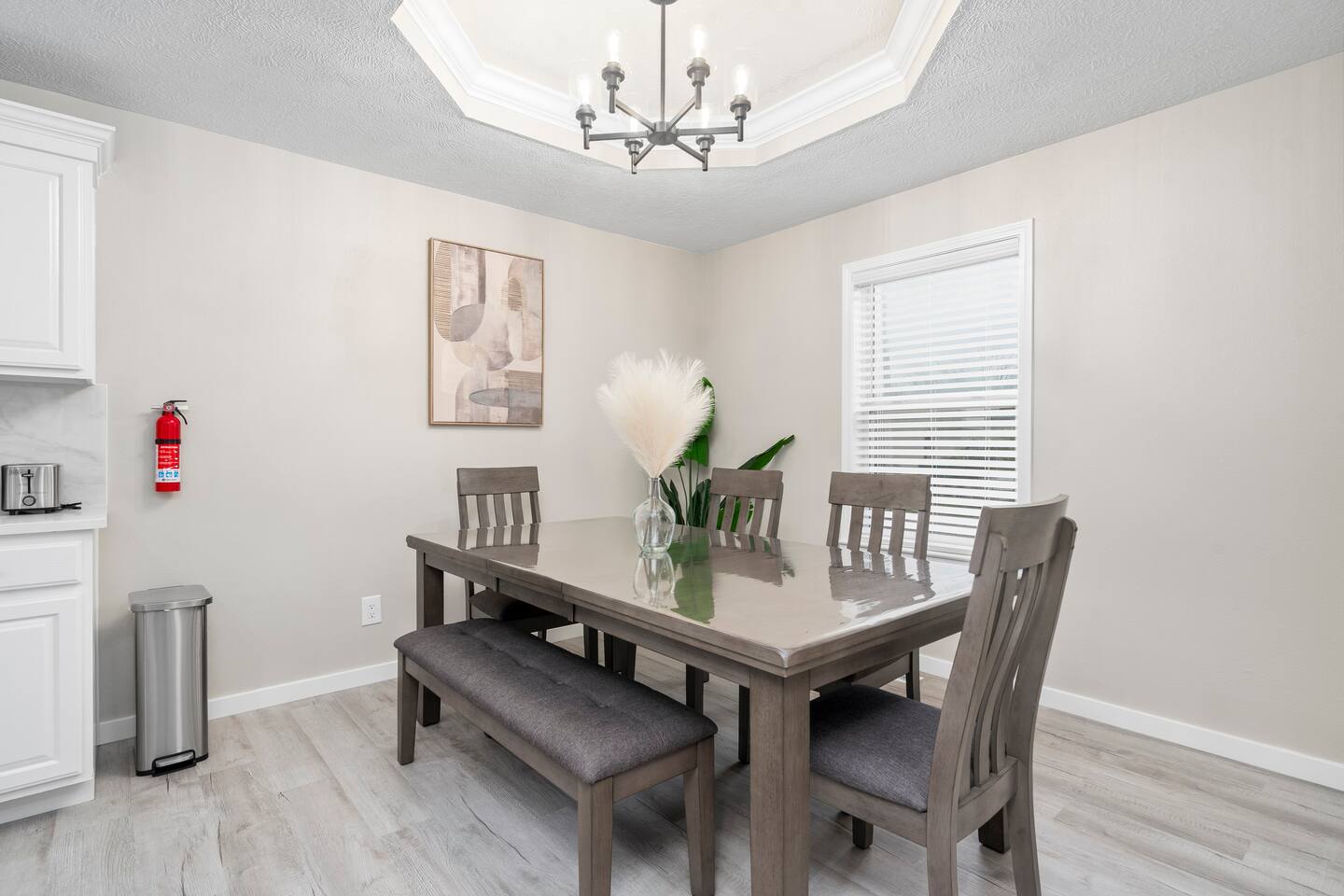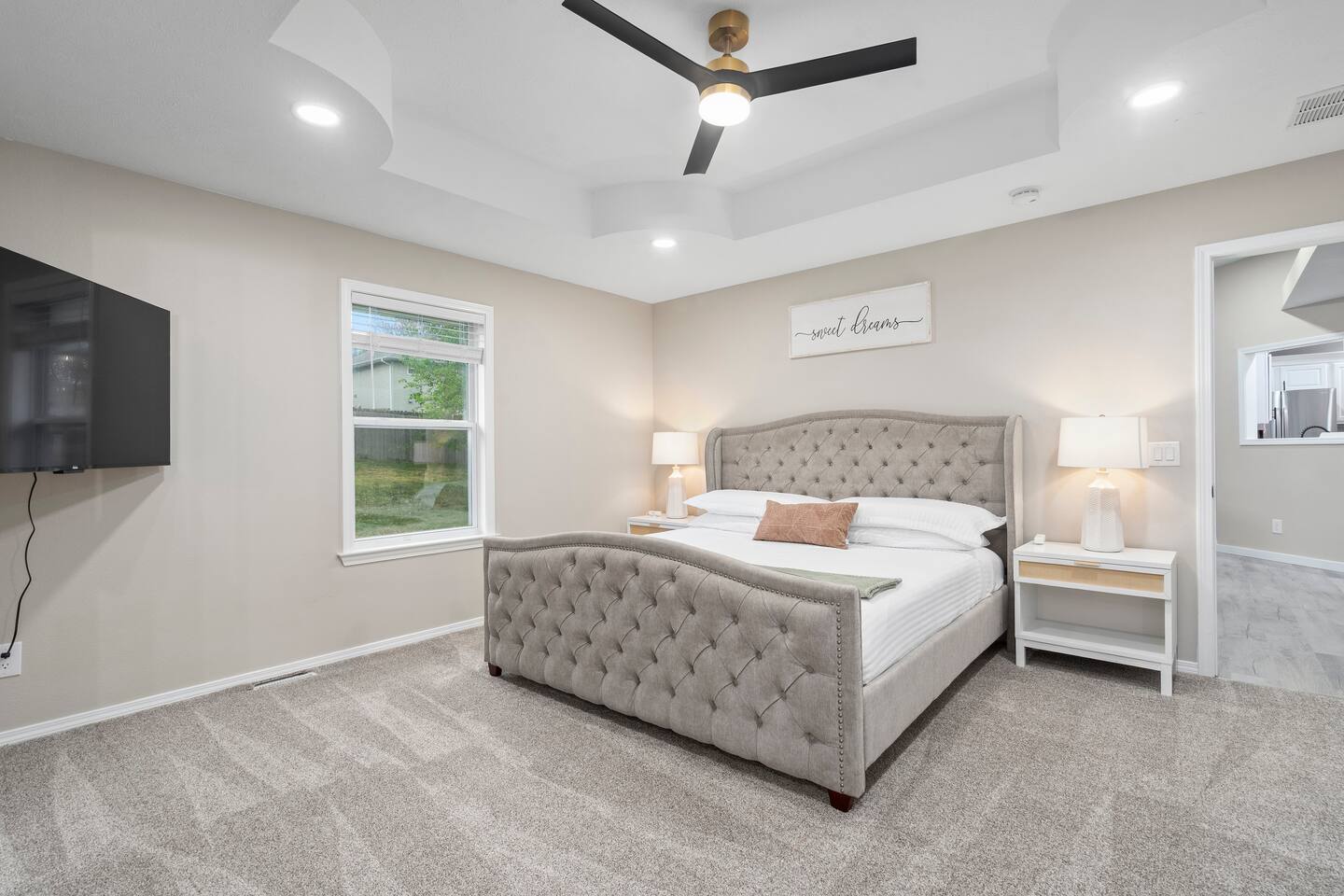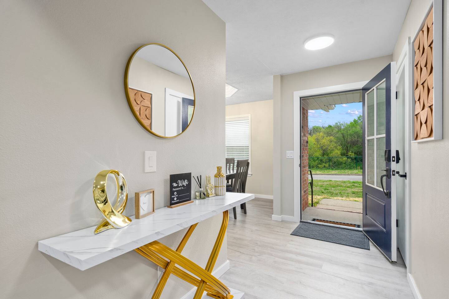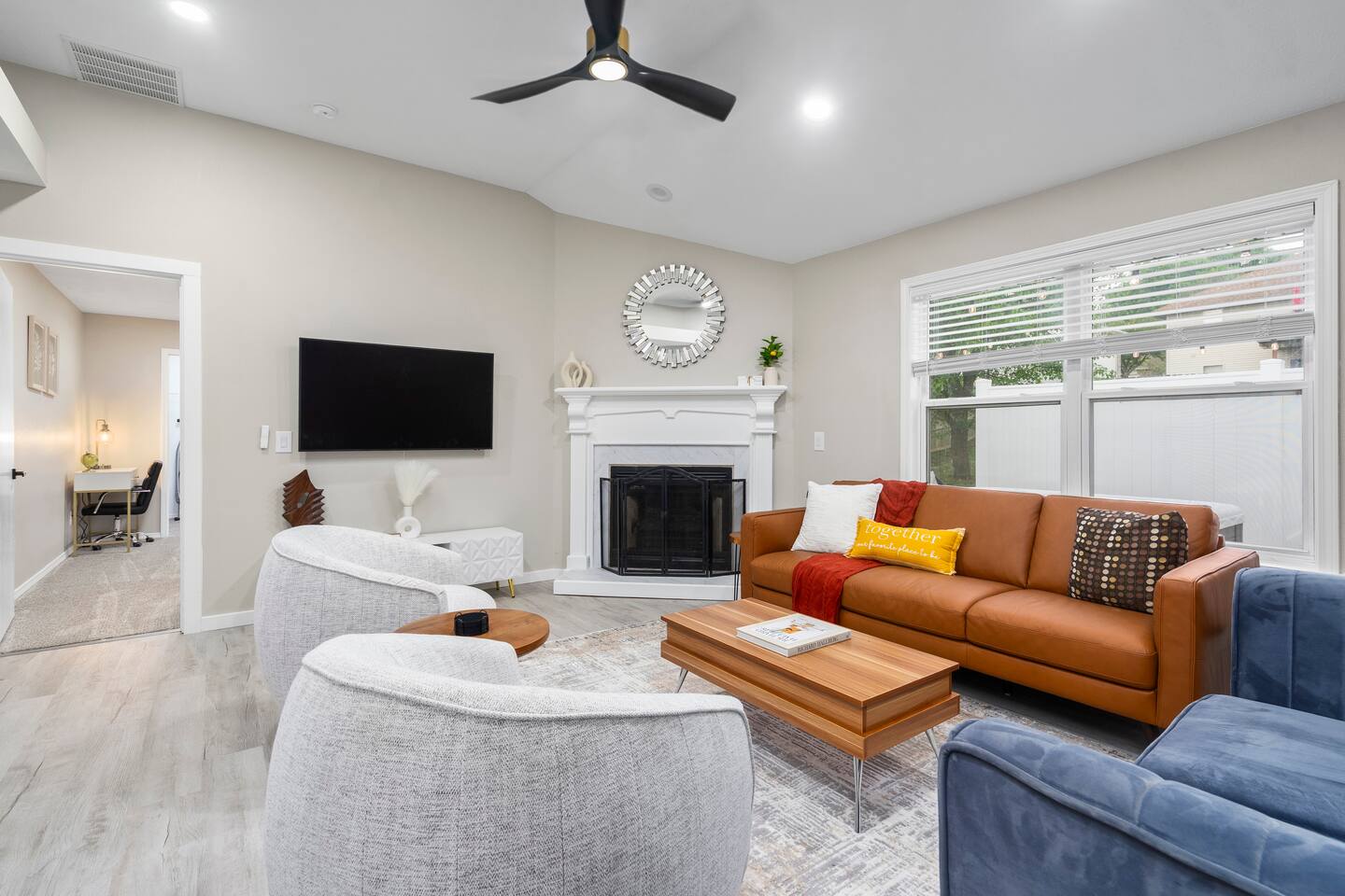 🏡 Living Room Relax in a bright, open living room with plenty of comfy seating, modern décor, and a cozy atmosphere perfect for movie nights or hanging out with friends and family. The space is designed for lounging, with a stylish mix of textures and a clean, inviting layout. 🍽️ Kitchen Enjoy cooking in a fully stocked kitchen with quartz countertops, stainless steel appliances, and all the essentials for a home-cooked meal. Whether you're prepping breakfast or hosting dinner, this kitchen blends function with high-end style. A dining table nearby offers a perfect spot for meals or game nights. 🛏️ Bedrooms This home features 3 bedrooms designed for comfort and flexibility: - Primary Suite with a king bed and smart TV for ultimate relaxation. (Sleeps 2) - Second Bedroom with a queen bed and cozy vibe. (Sleeps 2) - Third Bedroom is a kid-friendly zone with 4 twin beds and a toy table—great for families or groups. (Sleeps 4) All rooms features a TV with an adjustable mount for the perfect viewing angle, along with soft linens, and thoughtful touches to make you feel at home. 🌳 Backyard Step into a private, fenced-in backyard—perfect for unwinding, letting the kids play, or enjoying some fresh air. Soak in the hot tub under twinkling string lights (available year-round) and fire up the BBQ grill for a relaxed evening cookout. Whether you're kicking back after exploring Springfield or making memories with loved ones, this outdoor space has you covered. ✨ Amenities Our home is packed with everything you need for a comfortable and memorable stay. Enjoy high-speed Wi-Fi, central heating and air conditioning, and the convenience of an in-unit washer and dryer. For entertainment, you'll love the full game room featuring a pool table, foosball, and air hockey. We also offer self check-in, free parking, and a welcoming, family-friendly space designed with your comfort in mind.
