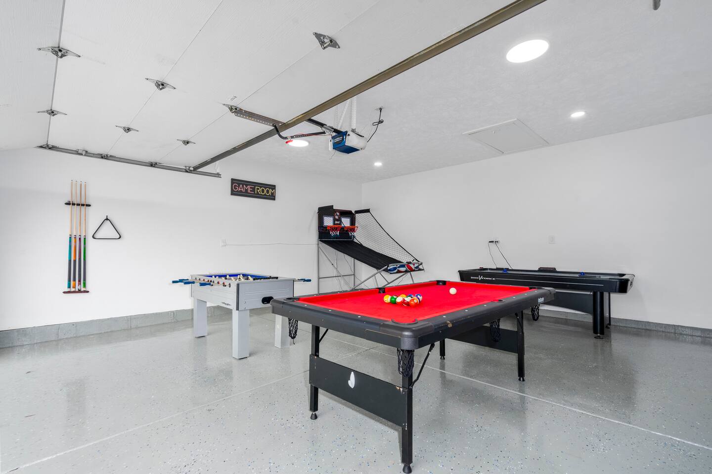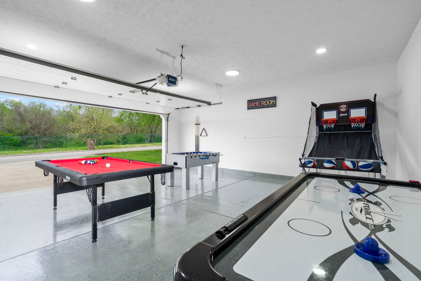 Escape to this upscale, Fun 3 bedroom getaway with a private hot tub, full game room (pool, foosball, air hockey), and TV in every room! Enjoy a king suite, stylish kitchen with quartz counters & stainless steel, plus a spacious living room with plenty of seating for lounging. With 4 twin beds, a queen room, and a fenced yard in a quiet neighborhood, it’s the perfect mix of luxury, comfort, and fun.